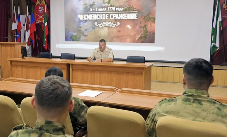 В пункте управления Объединенной группировки войск (сил) в Северо-Кавказском регионе прошло тематическое мероприятие для сотрудников ОМОН «Авангард», выполняющих задачи в составе ОГВ(с), и военнослужащих группировки, посвященное исторической дате – победе русского флота над турецким в Чесменском сражении.