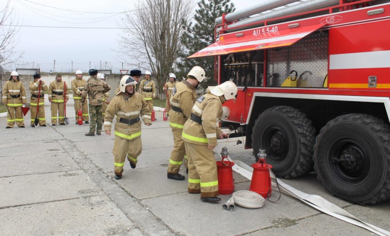 Военнослужащие ведомственной пожарной охраны отдельной ордена Жукова бригады оперативного назначения Северо-Кавказского округа Росгвардии совместно с сотрудниками МЧС России провели пожарно-тактическое занятие по тушению условного возгорания на складе горюче-смазочных материалов соединения.