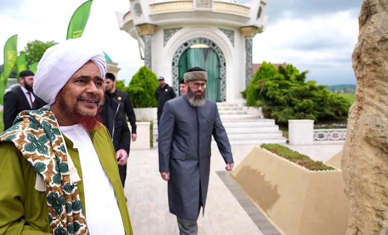 У могилы Первого Президента ЧР, Ахмата-Хаджи Кадырова их встретил Председатель Совета алимов СКФО Хож-Ахмед Кадыров.